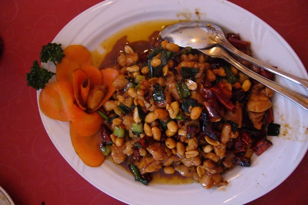 宫保鸡丁是一道著名的川菜,以鸡丁、干辣椒、花生和花椒为主要食材,口味麻辣微甜,鸡肉嫩滑,花生香脆,是中国最受欢迎的家常菜之一。